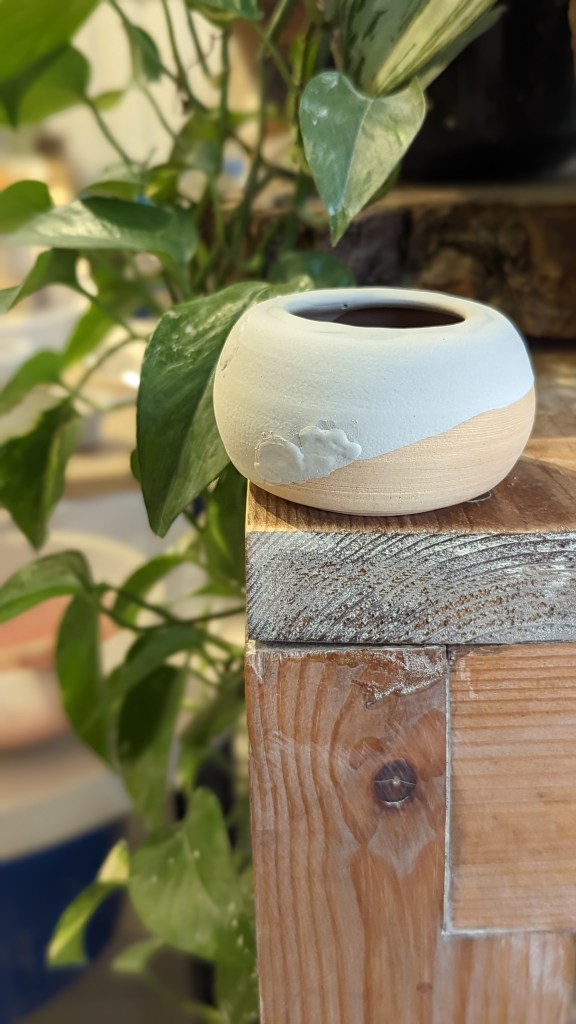 As a kid, I honestly had no interest in the wheel. But this time I think it’s hooked me. We had one session on throwing and one session on trimming. My first few pots were quite literally a flop, but I had so much fun!!